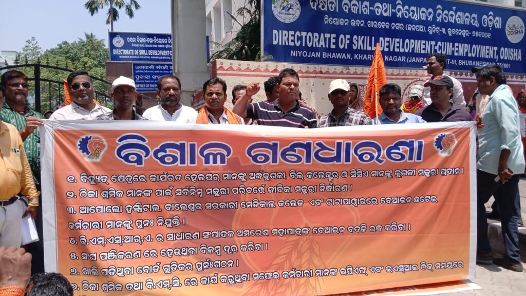 ଭୁବନେଶ୍ବର: ଶ୍ରମିକ ମାନଙ୍କ ବିଭିନ୍ନ ଦାବି ଗୁଡିକ ର ଶୁଣାଣି ରେ ବିଳମ୍ବ ତଥା ବିଭାଗୀୟ ଅବହେଳା ହେତୁ ଭାରତୀୟ ମଜଦୁର ସଂଘ, ଓଡିଶା ପକ୍ଷରୁ ଶ୍ରମ ଆୟୁକ୍ତ ଙ୍କ କାର୍ଯ୍ୟାଳୟ ଘେରାଉ କରାଯାଇଥିଲା । ଶ୍ରମିକ ମାନଙ୍କ ବିଭିନ୍ନ ସମସ୍ୟା ତଥା ବିଦ୍ୟୁତ ବିଭାଗ ରେ କାର୍ଯ୍ୟ କରୁଥିବା ହେଲପର ମାନଙ୍କୁ ଅର୍ବ କୁଶଳୀ, ବିଲ୍ କଲେକ୍ଟର ଏବଂ ସିସିଏ କର୍ମଚାରୀ ମାନଙ୍କୁ କୁଶଳୀ ଶ୍ରେଣୀର ମଜୁରୀ, ନିର୍ମାଣ କ୍ଷେତ୍ରରେ ଅନୁପ୍ରବେଶକାରୀ ବାଙ୍ଗାଲାଦେଶୀ ଶ୍ରମିକ ପରିବର୍ତ୍ତେ ସ୍ଥାନୀୟ ଶ୍ରମିକ କୁ ରୋଜଗାର ସୁଯୋଗ, ଆପୋଲୋ ହସ୍ପିଟାଲ ଏବଂ ବାଲେଶ୍ବର ସରକାରୀ ମେଡିକାଲ କଲେଜ ରେ ବେଆଇନ ଛଟେଇ କର୍ମଚାରୀ ମାନଙ୍କୁ ପୁନଃ ନିଯୁକ୍ତି, ସର୍ବନିମ୍ନ ମଜୁରୀ ସ୍ଥାନ ରେ ଜୀବିକା ମଜୁରୀ ନିର୍ଦ୍ଧାରଣ, ସଂଘ ପଞ୍ଜିକରଣ ରେ ହେଉଥିବା ବିଳମ୍ବ, ଦୂର କରିବା, ଭାରତୀୟ ମେଡିକାଲ ଏଣ୍ଡ ସେଲ୍ଲ୍ସ୍ ରିପ୍ରେଜେଣ୍ଟେଟିଭସ୍ ଆସୋସିଏସନ୍ ର ସାଧାରଣ ସମ୍ପାଦକ ଅମରେଶ ମହାପାତ୍ର ଙ୍କ ବେଆଇନ ବଦଳି ରଦ୍ଧ କରିବା, ଖାଲି ପଡ଼ିଥିବା ବୋର୍ଡ ଗୁଡିକ ର ପୁନର୍ଗଠନ, ଠିକା ଶ୍ରମିକ ତଥା ବିଶେଷ କରି ଭୁବନେଶ୍ୱର ମହାନଗର ନିଗମ ରେ କାର୍ଯ୍ୟ କରୁଥିବା ସଫେଇ କର୍ମଚାରୀ ମାନଙ୍କ ଇପିଏଫ୍ ଏବଂ ଇଏସଆଇ ଠିକ୍ ସମୟରେ ପୈଠ କରିବା ଆଦି ଦାବି ନେଇ ଆୟୋଜିତ ଏହି ଧାରଣା ରେ ୪୦୦୦ ରୁ ଉର୍ଦ୍ଧ୍ଵ ଶ୍ରମିକ ମାନେ ଯୋଗ ଦେଇଥିଲେ । ଭାରତୀୟ ମଜଦୁର ସଂଘ ର ରାଜ୍ୟ ସାଧାରଣ ସମ୍ପାଦକ ପୃଥୀରାଜ ପଣ୍ଡା ଶ୍ରମ ବିଭାଗ ତଥା ଶ୍ରମ କାର୍ଯ୍ୟାଳୟ ଶ୍ରମିକ ମାନଙ୍କ ଶୋଷଣ ସମୟରେ ତତ୍ପର ହୋଇ କାର୍ଯ୍ୟ କରିବା ର ଆବଶ୍ୟକତା ରହିଛି ବୋଲି କହିଥିଲେ । ଭାରତୀୟ ମଜଦୁର ସଂଘ ର ରାଜ୍ୟ ସମ୍ପାଦକ ତଥା ନିଳ ଓଡିଶା ବିଦ୍ୟୁତ ମଜଦୁର ମହାସଂଘ ର ସାଧାରଣ ସମ୍ପାଦକ ସତ୍ୟବ୍ରତ ପରିଡା ବିଦ୍ୟୁତ ବିଭାଗ ତଥା ବିଶେଷ କରି ଟାଟା ପାୱାର ର ଶ୍ରମିକ ଶୋଷଣ ଚରମ ସୀମାରେ ପହଞ୍ଚିଛି ଶ୍ରମ କମିଶନରଙ୍କ କାର୍ଯ୍ୟାଳୟ ସୁରକ୍ଷା ପରିବର୍ଭେ ନିରବ ଦ୍ରଷ୍ଟା ସାଜିଛି ବୋଲି କହିବା ସହ, ବିପଦପୂର୍ଣ୍ଣ କ୍ଷେତ୍ରରେ କାର୍ଯ୍ୟ କରୁଥୁବା ରୁ ସେମାନଙ୍କ ପାଇଁ ସ୍ୱତନ୍ତ୍ର ସର୍ବନିମ୍ନ ମଜୁରୀ ନିର୍ଦ୍ଧାରଣ ପାଇଁ ବକ୍ତବ୍ୟ ରଖୁଥୁଲେ । ଅନ୍ୟମାନଙ୍କ ମଧ୍ୟରେ ଭାରତୀୟ ମଜଦୁର ସଂଘ ର ବରିଷ୍ଠ ନେତା ଏସ ଶ୍ରୀନିବାସ ରାଓ, ରାଜ୍ୟ ସମ୍ପାଦକ ରଂଜନ ଦାଶ, ଖୋର୍ଦ୍ଧା ଜିଲ୍ଲା ସମ୍ପାଦକ ଅକ୍ଷୟ ରାଉତରାୟ, ରାଜ୍ୟ କୋଷାଧ୍ୟକ୍ଷ ସଞ୍ଜୟ ଦେହୁରୀ, ନିଶୂଳ ଓଡିଶା ବିଦ୍ୟୁତ ମଜଦୁର ମହାସଂଘ ର ପବିତ୍ର ନାୟକ, ଚିହ୍ନୟ ପଣ୍ଡା, ବସନ୍ତ ପଲେଇ, କପିଳେଶ୍ବର ମହାପାତ୍ର, ସତ୍ୟବ୍ରତ ସ୍ୱାଇଁ ଭାରତୀୟ ମଜଦୂର ସଙ୍ଘ ର ସହ ସାଧାରଣ ସମ୍ପାଦକ ଶ୍ରୀ ସଚ୍ଚିଦାନନ୍ଦ ଗଡ଼ନାୟକ, ଖୋର୍ଦ୍ଧା ଜିଲ୍ଲା ସଭାପତି ଶ୍ରୀ ପାର୍ଥ ସାରଥୀ ମହାନ୍ତି ପ୍ରମୁଖ ଙ୍କ ନେତୃତ୍ବରେ ଆନ୍ଦୋଳନ ପରିଚାଳନା ହୋଇଥୁଲା I